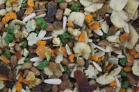 Směs sušeného ovoce a ořechů pro velké papoušky.